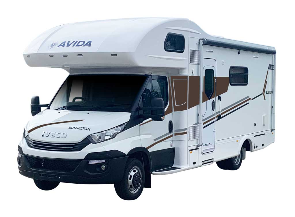 The Avida Busselton range is fully self-contained with kitchen, rear or mid bathroom, and is built on the rear wheel drive Iveco chassis. Available as a C Type (bed over cabin), the Avida Busselton has a number of models with and without slide out room and can be driven on a standard car licence!
